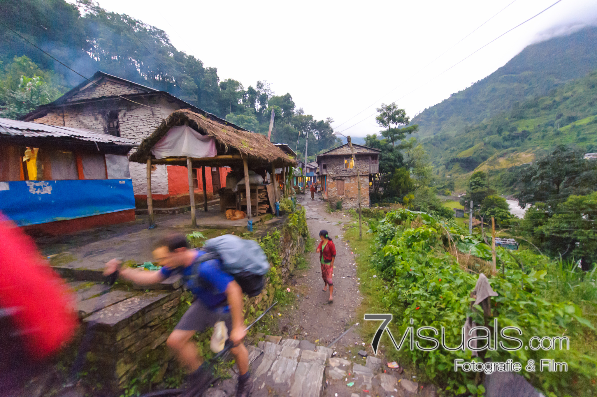 Our trek took about 18 days, leaving from Kathmandu with the bus-hellride to Bhulbhule ( https://www.youtube.com/watch?v=2oR61FZ1wiw / German text ). The trail is moderate to fairly challenging and makes numerous river crossings over steel and wooden suspension bridges.